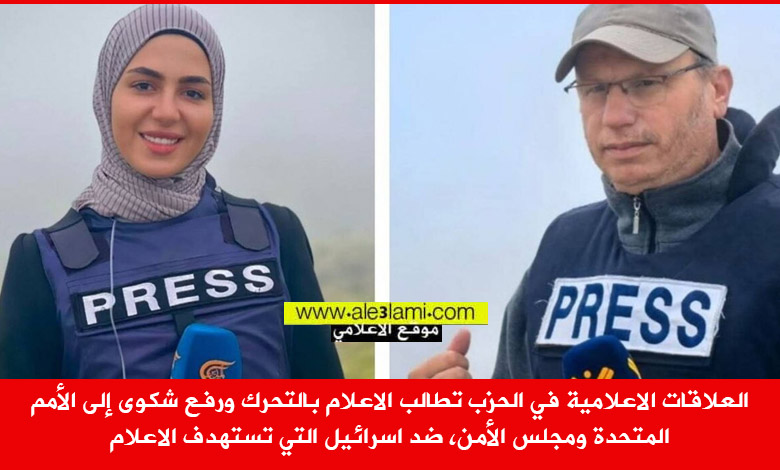 العلاقات الاعلامية في الحزب تطالب الاعلام بالتحرك ورفع شكوى إلى الأمم المتحدة ومجلس الأمن، ضد اسرائيل التي تستهدف الاعلام.