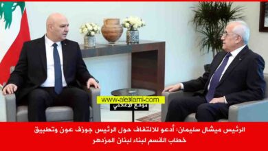 الرئيس ميشال سليمان: أدعو للالتفاف حول الرئيس جوزف عون وتطبيق خطاب القسم لبناء لبنان المزدهر هنّأ الرئيس السابق ميشال سليمان…