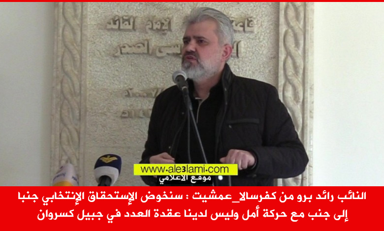 النائب رائد برو من كفرسالا_عمشيت : سنخوض الإستحقاق الإنتخابي جنبا إلى جنب مع حركة أمل وليس لدينا عقدة العدد في جبيل كسروان
