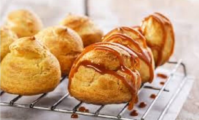 - حلوى فرنسية راقية أصلها من فرنسا، تتميز بكرات عجين خفيفة ومحشوة بكريمة ناعمة ومغطاة بصلصة كراميل لامعة… مثالية للعزائم والمناسبات الفاخرة.
