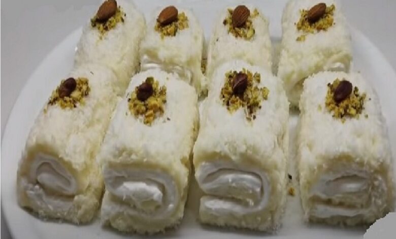 🍽️ النتيجة: لفائف كريمية ناعمة بطعم الشوكولاتة وجوز الهند تذوب في الفم… حلوى مثالية مع القهوة أو الشاي.