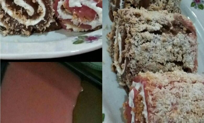- ضعي الرول في الثلاجة لمدة 2–3 ساعات حتى يتماسك.
